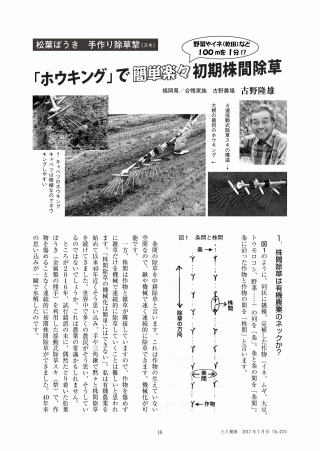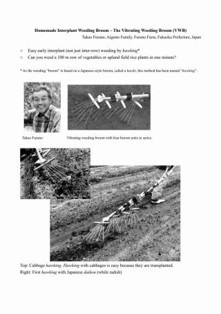松葉ぼうき 手作り除草犂(スキ) 「ホウキング」で簡単楽々初期株間除草 野菜や稲(乾田)など100mを1分!? 詳しくはこちらのリンクを参照して下さい |