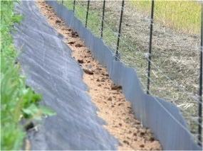電気柵に草が触れると電気ショックが弱まります。 しかし草刈り作業はたいへんです。 草を切る作業を無くすために、防草シートと、畔波シートのすき間にもみ殻をまいてみました。 |